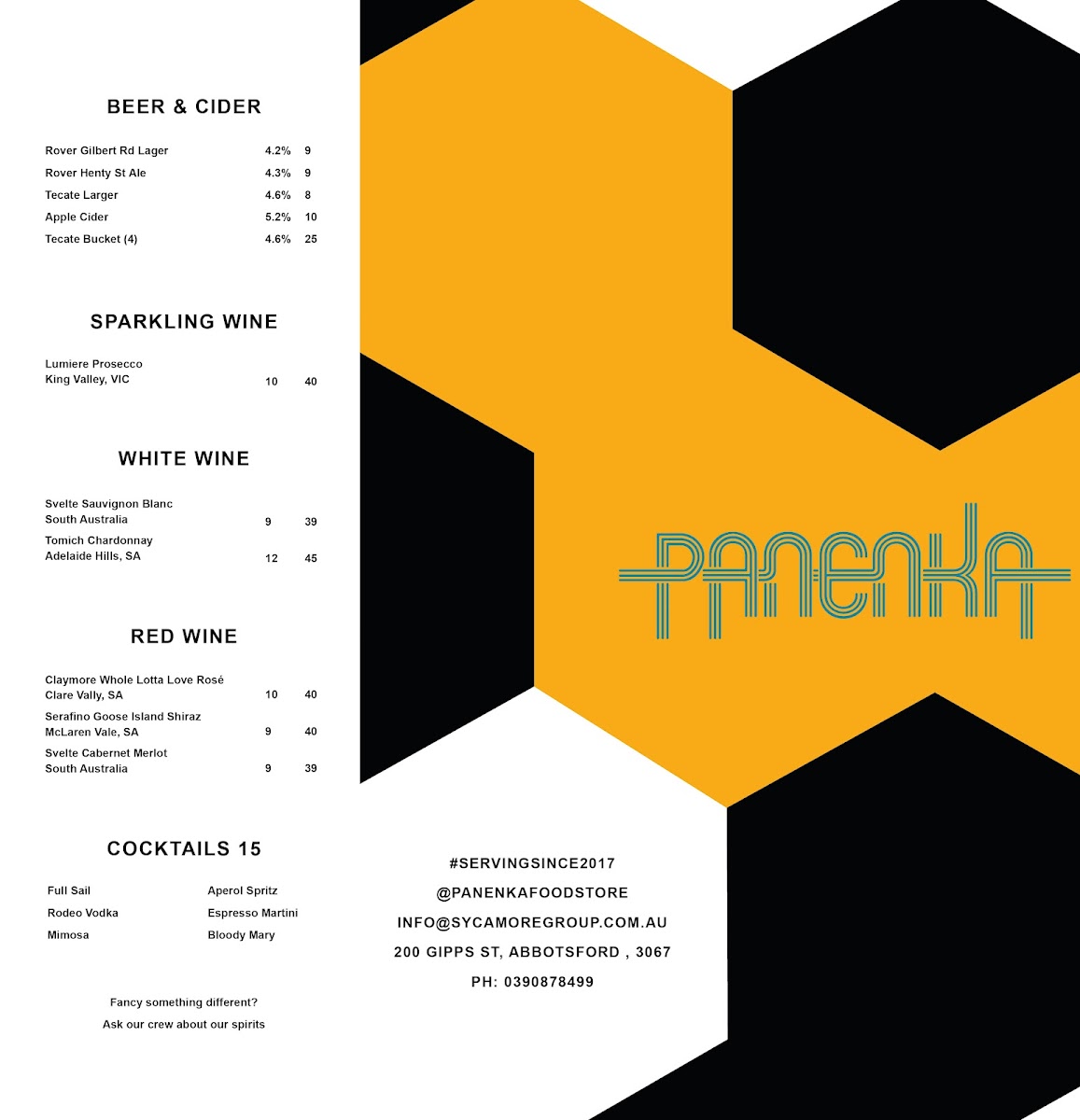 Introducing the Menu at Panenka